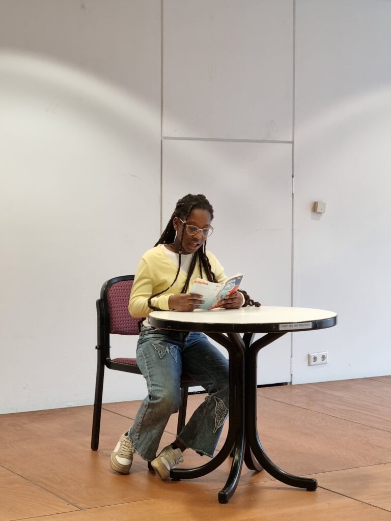Zunächst präsentierten sie jeweils drei Minuten lang eine selbst gewählte Textstelle. Im Anschluss folgte der Fremdtext: Zwei Minuten lang mussten die Teilnehmenden spontan ihr Können unter Beweis stellen. Auch diese Herausforderung meisterten Ayan, Diamond und Rico souverän.